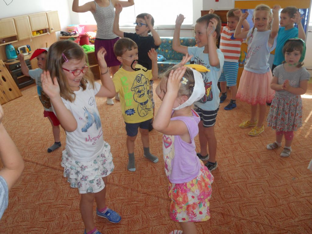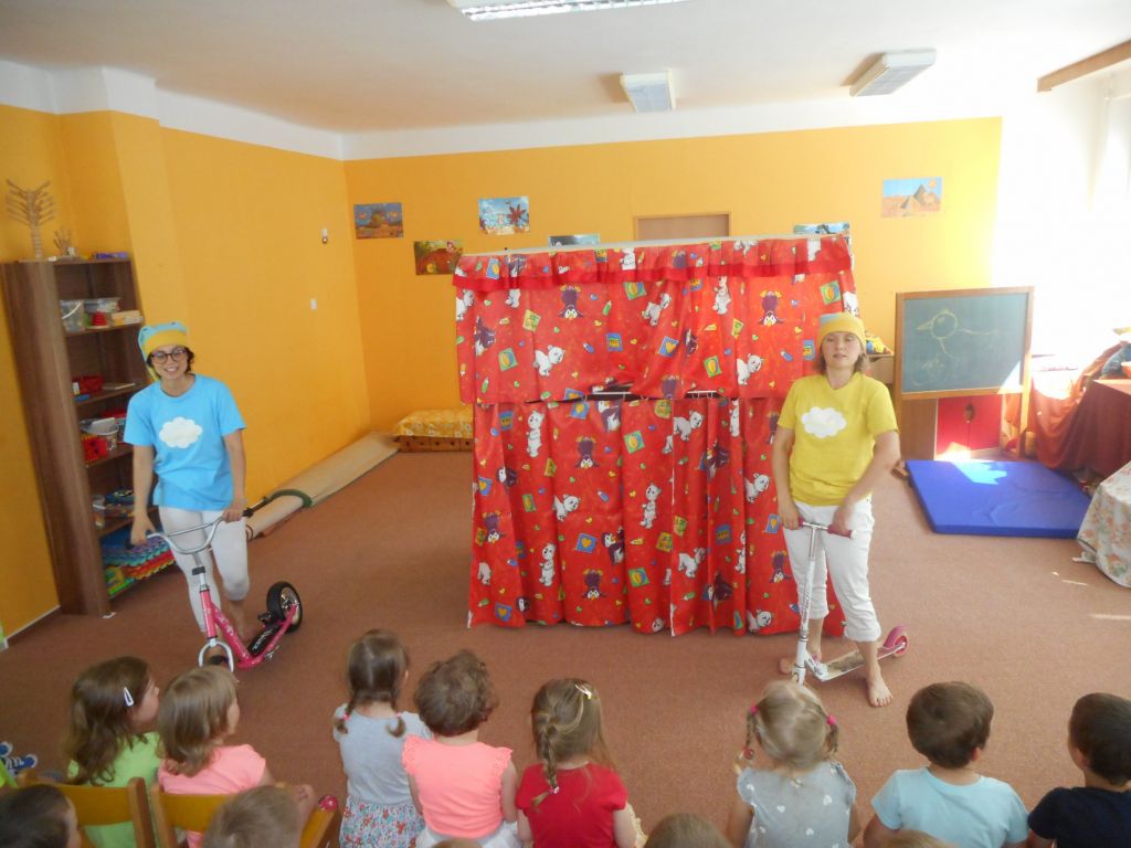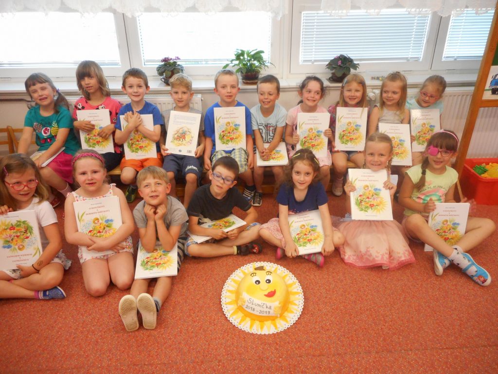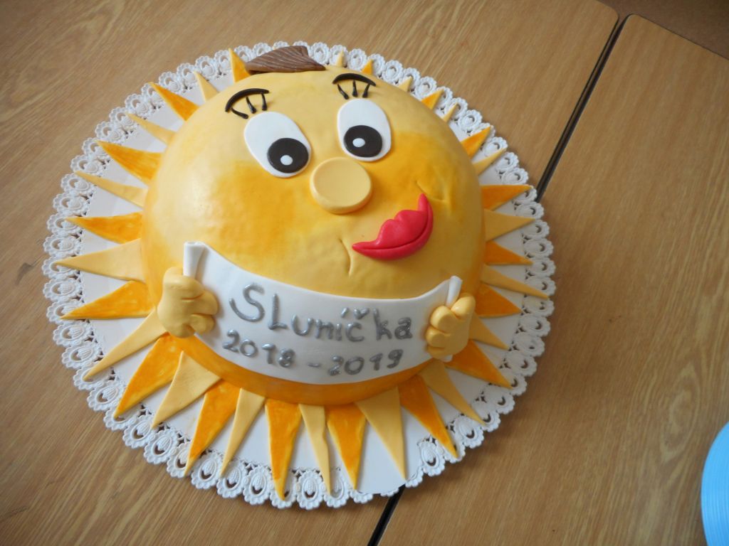 Ráno děti přivítala třída „Sluníček“ vyzdobená zlato – fialovými balónky. Těm pohotovějším okamžitě došlo, že se něco významného bude dít. A taky ano !!! Nastal den, kdy jsme se rozhodli rozloučit s našimi budoucími „ prvňáčky“.